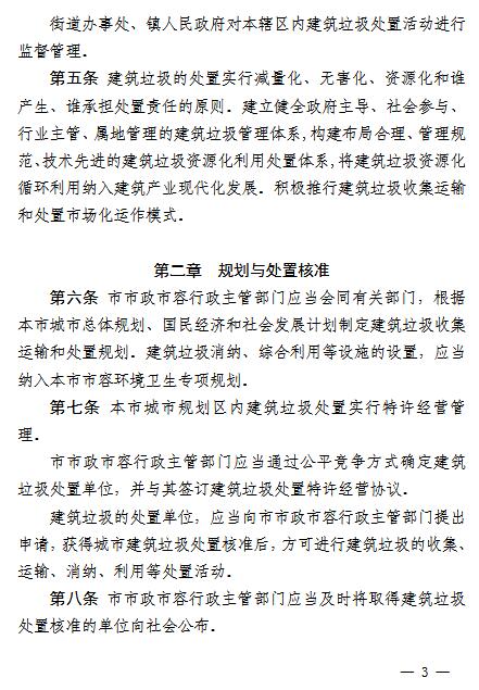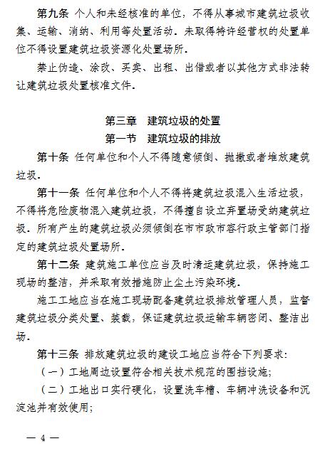 《辦法》要求,在建筑垃圾的排放上,任何單位和個人不得隨意傾倒、拋撒或者堆放建筑垃圾,不得將建筑垃圾混入生活垃圾,不得將危險廢物混入建筑垃圾,不得擅自設(shè)立棄置場受納建筑垃圾。因建設(shè)等特殊需要,確需臨時占用街道兩側(cè)和公共場地堆放的,應(yīng)當(dāng)征得??谑惺姓腥菪姓鞴懿块T同意后,按照有關(guān)規(guī)定辦理審批手續(xù)。裝修或者維修房屋排放建筑垃圾的,應(yīng)當(dāng)實行袋裝化收集;無主建筑垃圾,由垃圾所在區(qū)域的物業(yè)管理單位或者社區(qū)居委會上報各區(qū)市政市容行政主管部門;棚戶區(qū)(城中村)改造所產(chǎn)生的建筑垃圾,由??谑姓腥菪姓鞴懿块T核準(zhǔn)的建筑垃圾處置單位統(tǒng)一收集、運輸和資源化處置。