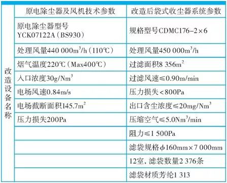 原窯頭電除塵系統(tǒng)參數(shù)及改造為袋收塵系統(tǒng)參數(shù)對(duì)比(見(jiàn)表1)。改造后排放指標(biāo)(見(jiàn)表2)。
