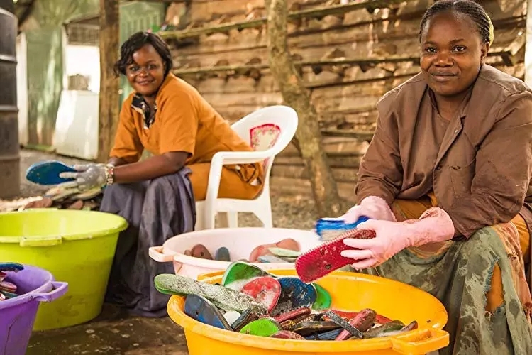 1998年,肯尼亞的環(huán)保主義者Julie Church在看到海洋環(huán)境的惡化之后,感到無(wú)比痛心,下定決心一定要幫助當(dāng)?shù)厝烁淖儛毫拥沫h(huán)境。2005年,Julie成立了肯尼亞海洋保護(hù)組織——Ocean Sole。致力于海灘環(huán)境保護(hù),同時(shí)也為當(dāng)?shù)氐牡褪杖肴巳禾峁┚蜆I(yè)崗位和穩(wěn)定收入。