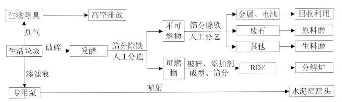 圖2 典型的RDF水泥協(xié)同處置生活垃圾工藝流程圖
