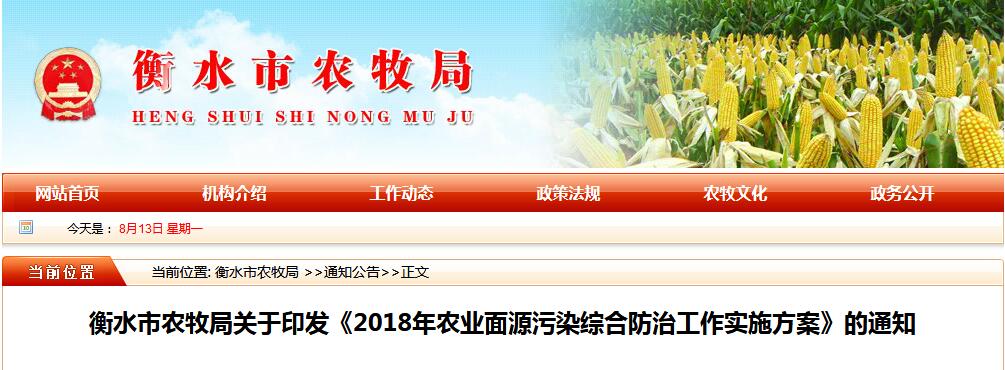 衡水市農(nóng)牧局關(guān)于印發(fā)《2018年農(nóng)業(yè)面源污染綜合防治工作實施方案》的通知