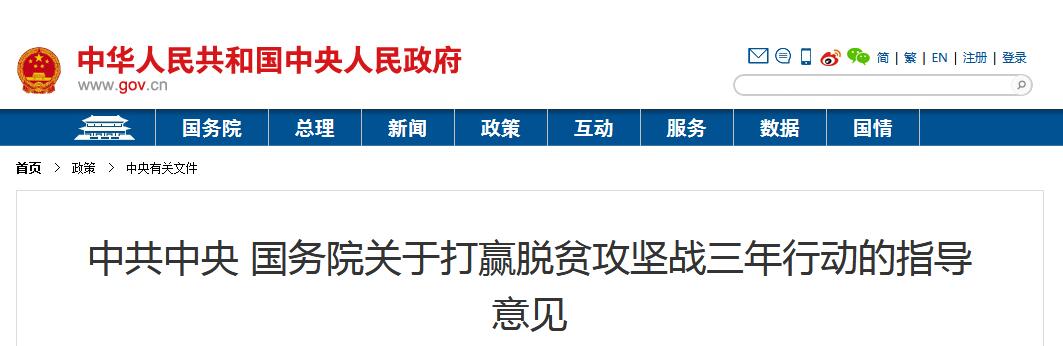 中共中央 國(guó)務(wù)院關(guān)于打贏脫貧攻堅(jiān)戰(zhàn)三年行動(dòng)的指導(dǎo)意見(jiàn)