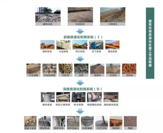 商業(yè)模式、市場需求決定,建筑垃圾資源化的技術(shù)路線;固廢處置工廠深、細、精加工與移動裝備就地資源化相結(jié)合。
