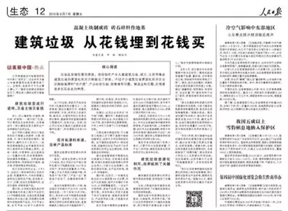 《人民日報》近日發(fā)文,關(guān)注湖北、江蘇等地在建筑垃圾的資源化利用方面做出的探索。