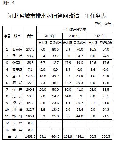 4.河北省城市排水老舊管網(wǎng)改造三年任務(wù)表