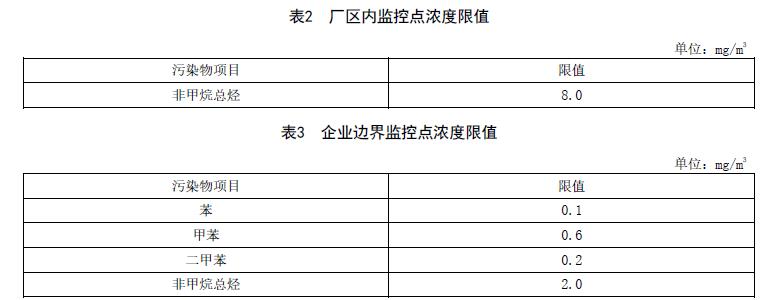 5.3.1 無組織排放監(jiān)控點(diǎn)濃度限值應(yīng)執(zhí)行表2、表3 的規(guī)定。
