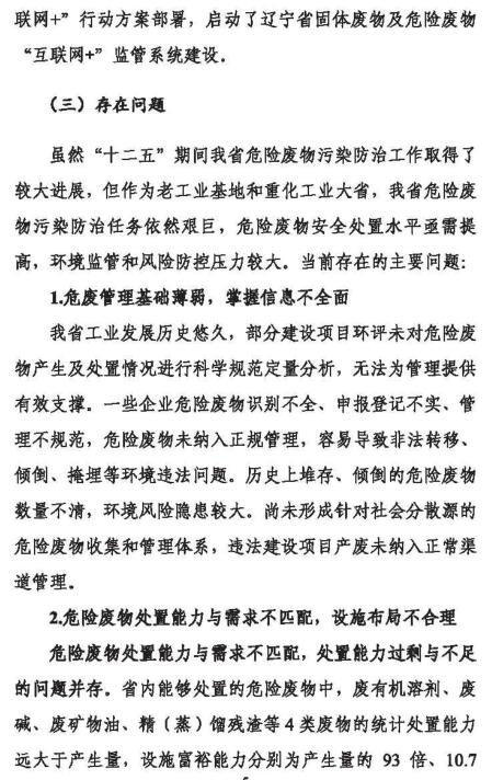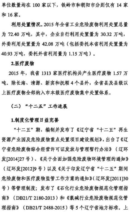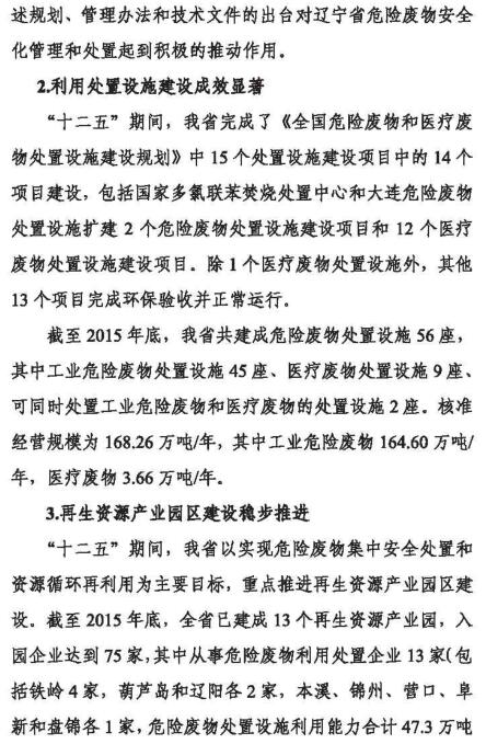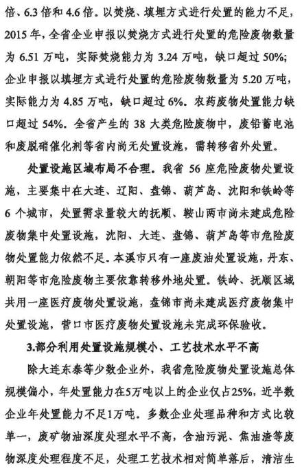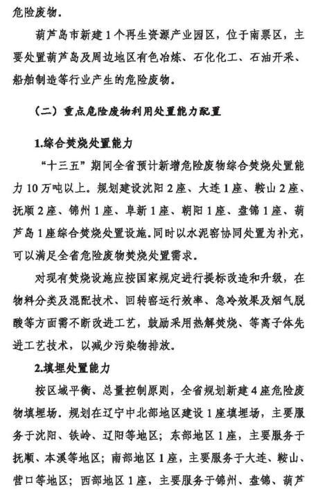 日前,遼寧環(huán)保廳公布了《遼寧省“十三五”危險廢物污染防治規(guī)劃》,預(yù)計“十三五”期間危險廢物利用處置設(shè)施建設(shè)資金投入達(dá)20億元以上,全省新增危險廢物處置能力50萬噸以上,全省危險廢物利用處置總能力達(dá)220萬噸,基本滿足全省危險廢物利用處置需求。