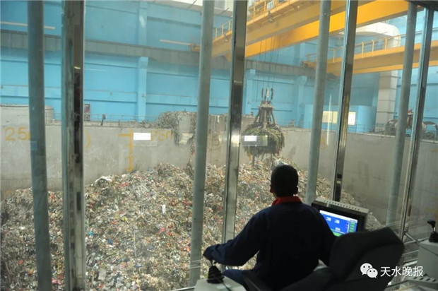 在位于社棠工業(yè)園區(qū)南區(qū)的中節(jié)能(天水)環(huán)保能源有限公司里記者看到,從兩區(qū)五縣源源不斷通過環(huán)衛(wèi)垃圾車?yán)\(yùn)來的生活垃圾被倒進(jìn)偌大的垃圾倉后,經(jīng)過初步處理后再投進(jìn)燃燒爐焚燒發(fā)電,焚燒后產(chǎn)生的廢渣通過自動(dòng)生產(chǎn)線打包后運(yùn)往另外一個(gè)廠家生產(chǎn)輕型環(huán)保磚。
