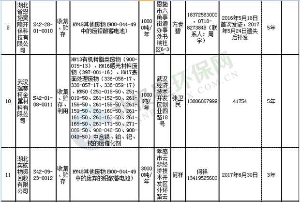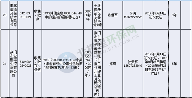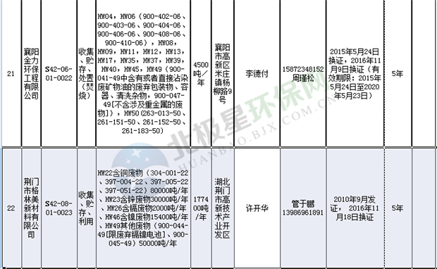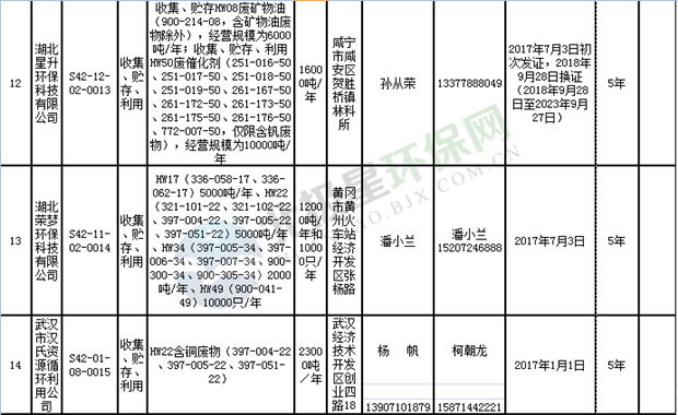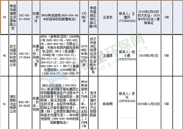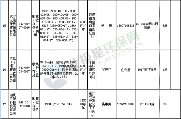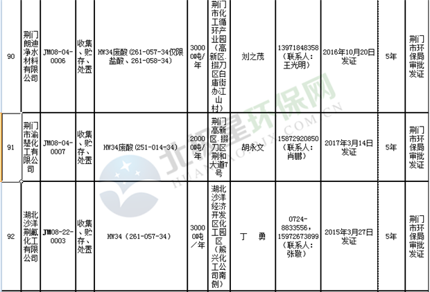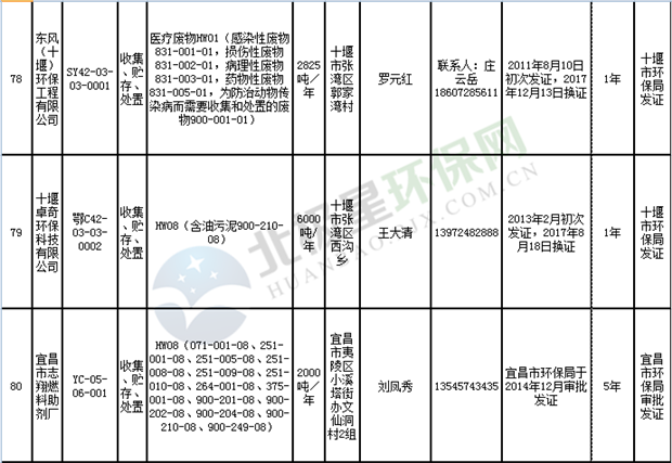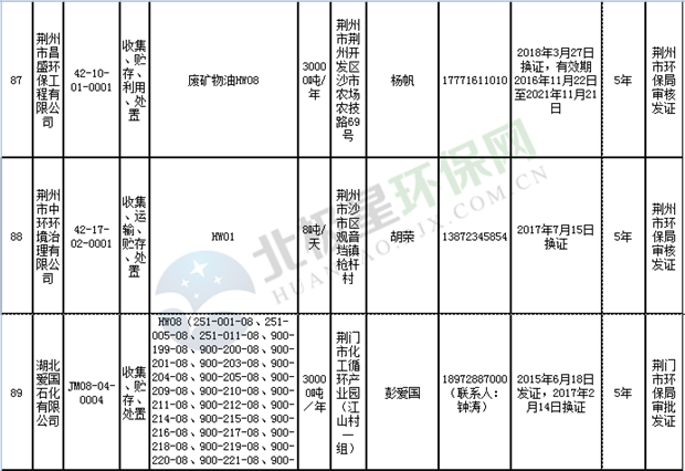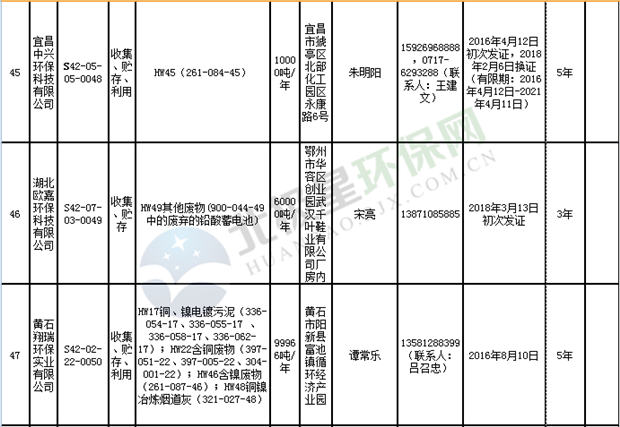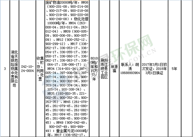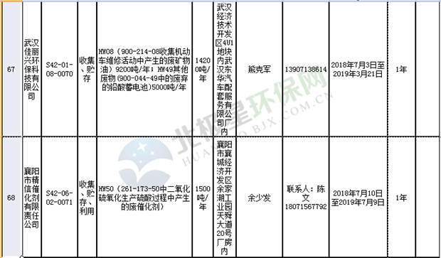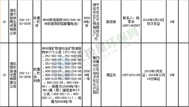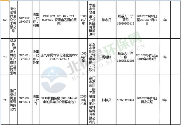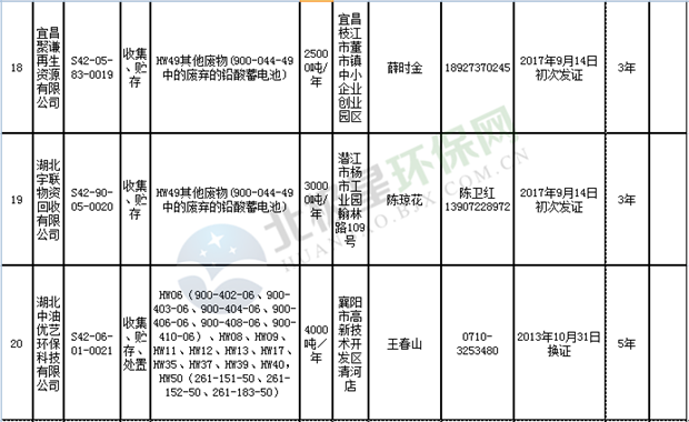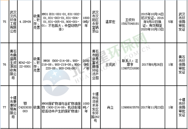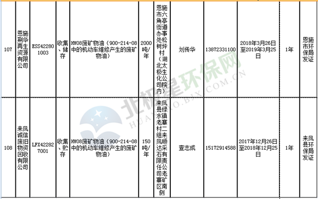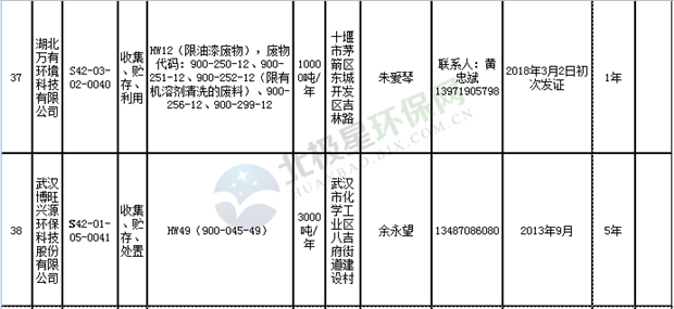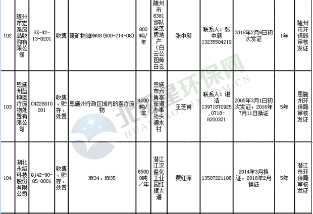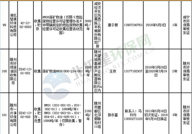 日前湖北省環(huán)保廳發(fā)布了《湖北省危險(xiǎn)廢物經(jīng)營許可證》單位名錄(截至2018年10月12日,共108家),且附有聯(lián)系電話,具體內(nèi)容如下: