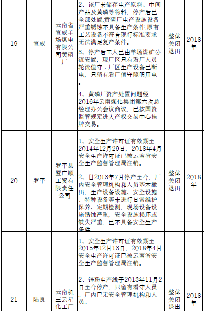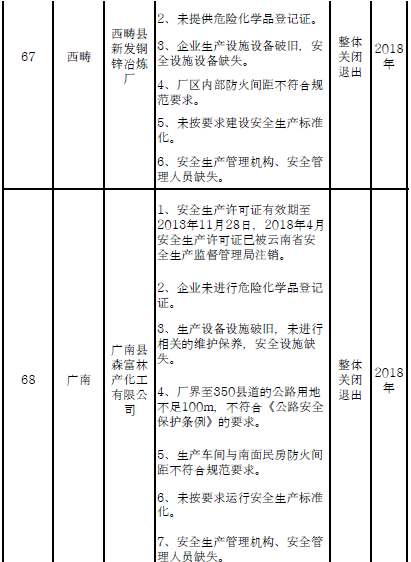 附件:1.云南省危險化學(xué)品安全工程三年行動計劃關(guān)閉退出企業(yè)(裝置)名單(分地區(qū))