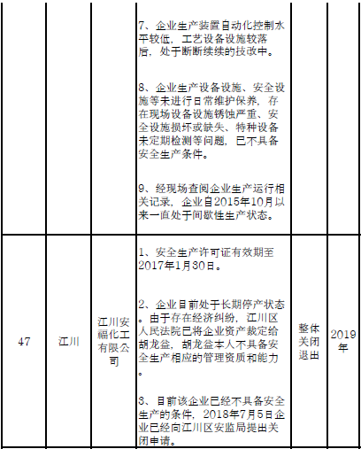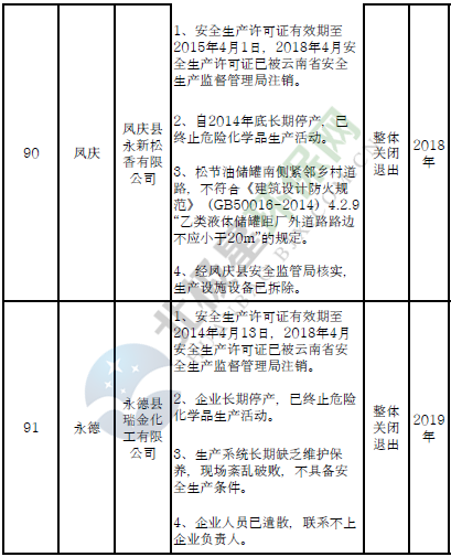 對91戶危險化學(xué)品生產(chǎn)(儲存)企業(yè)和部分生產(chǎn)裝置,雖不在城鎮(zhèn)人口密集區(qū),但由于不符合產(chǎn)業(yè)政策、不具備基本安全生產(chǎn)條件且無法整改的,實施關(guān)閉退出。