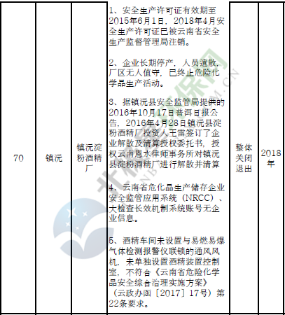 為認(rèn)真落實《云南省人民政府關(guān)于實施安全工程三年行動計劃(2018-2020年)的意見》(云政發(fā)〔2018〕50號),省安委辦在全面排查的基礎(chǔ)上,經(jīng)征求有關(guān)州市政府意見,明確關(guān)閉退出、就地改造、綜合整治的危險化學(xué)品生產(chǎn)(儲存)企業(yè)名單,現(xiàn)印發(fā)你們,請各地認(rèn)真制定危險化學(xué)品安全工程三年行動計劃具體實施方案,明確目標(biāo)任務(wù)、責(zé)任單位和工作要求,確保按照規(guī)定的時間節(jié)點完成各項工作。