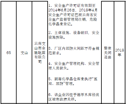 附件下載:1.附件1云南省危險化學(xué)品安全工程三年行動計劃關(guān)閉退出企業(yè)(裝置)名單(91戶).docx