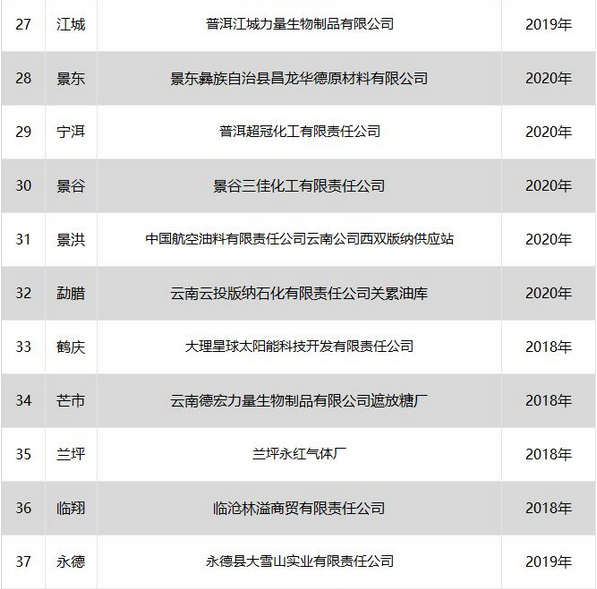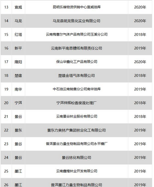 2.云南省危險化學(xué)品安全工程三年行動計劃就地改造和整改企業(yè)名單(分地區(qū))