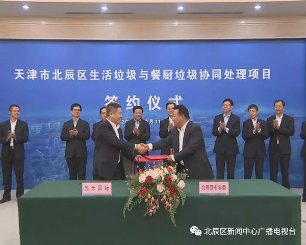 日前,北辰區(qū)與中國光大國際有限公司簽定生活垃圾與餐廚垃圾協(xié)同處理項目。中國光大國際有限公司總裁王天義、副總經(jīng)理胡延國,中國光大銀行天津分行行長陳紹寧,區(qū)委副書記、區(qū)長王寶雨,副區(qū)長胡學(xué)春出席簽約儀式。