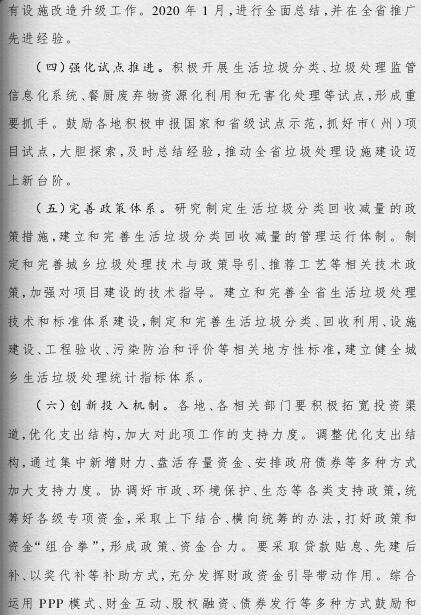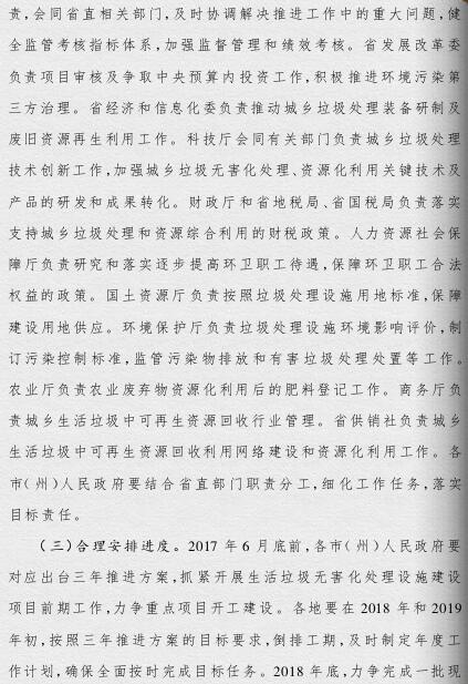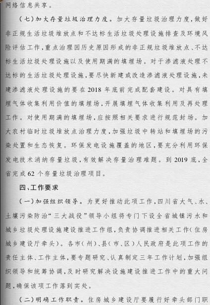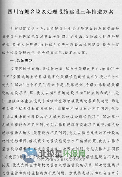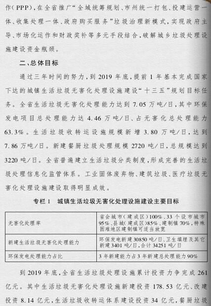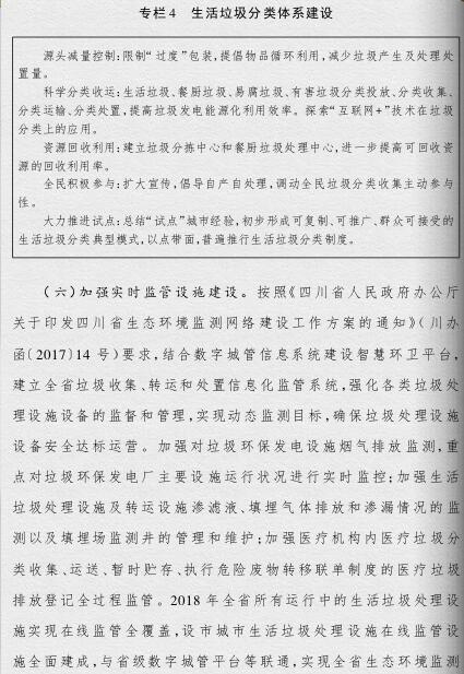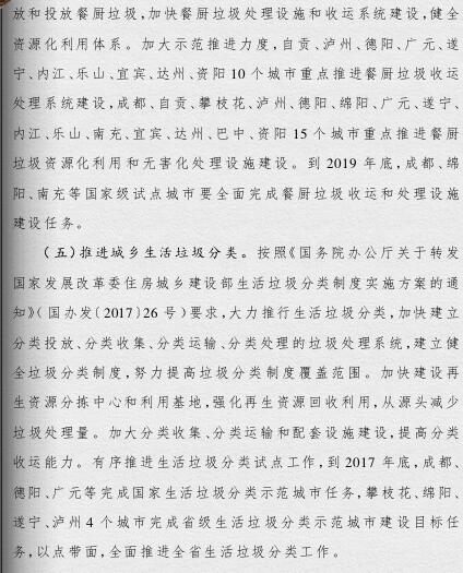四川省政府印發(fā)了《四川省城鄉(xiāng)垃圾處理設施建設三年推進方案》(以下簡稱《方案》)。《方案》提出,到2019年底,我省生活垃圾無害化處理能力將達7.05萬噸/日,生活垃圾處理設施累計投資力爭完成361億元,普遍建立生活垃圾分類制度,形成完善的生活垃圾處理信息化監(jiān)管體系。