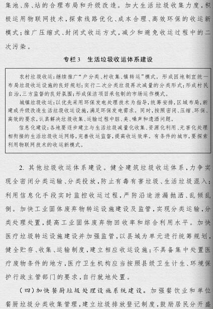 根據垃圾處理設施服務半徑和覆蓋范圍,規(guī)范和完善前端收集站點的布局和建設,加強縣城老舊轉運站改造和鎮(zhèn)鄉(xiāng)垃圾中轉設施建設,對餐飲業(yè)和單位餐廚垃圾分類收集管理,建立垃圾排放登記制度。