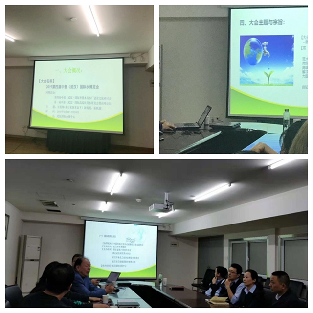 其次由水博會組委會項目運營總監(jiān)胡兵為參加會議的相關(guān)領(lǐng)導介紹展示2019中國(武漢)國際水博覽會項目實施方案的講解,詳見下圖