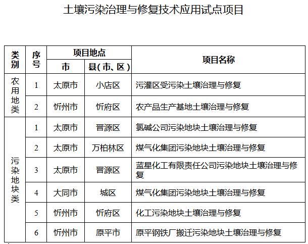 20.推進土壤污染治理與修復(fù)項目庫建設(shè),強化土壤污染防治項目儲備。進一步抓好土壤污染治理與修復(fù)技術(shù)應(yīng)用試點工作,2017年重點實施2個農(nóng)用地類和6個污染地塊類土壤污染治理與修復(fù)技術(shù)應(yīng)用試點項目(見附件),按照國家規(guī)定時限要求完成。以城市周邊污灌區(qū)、受污染耕地集中區(qū)域為重點,各市要啟動一批受污染耕地治理與修復(fù)項目,全省共啟動3000畝受污染耕地治理與修復(fù)。(省環(huán)保廳、省農(nóng)業(yè)廳、省國土資源廳牽頭,各市人民政府負(fù)責(zé)落實)