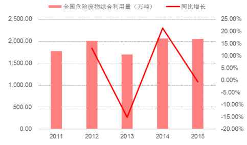 全國(guó)危廢綜合利用量(單位:萬(wàn)噸)