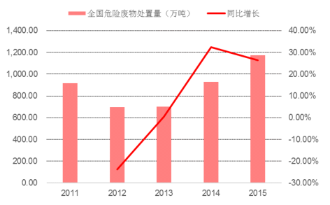 全國(guó)危廢處置量(單位:萬(wàn)噸)