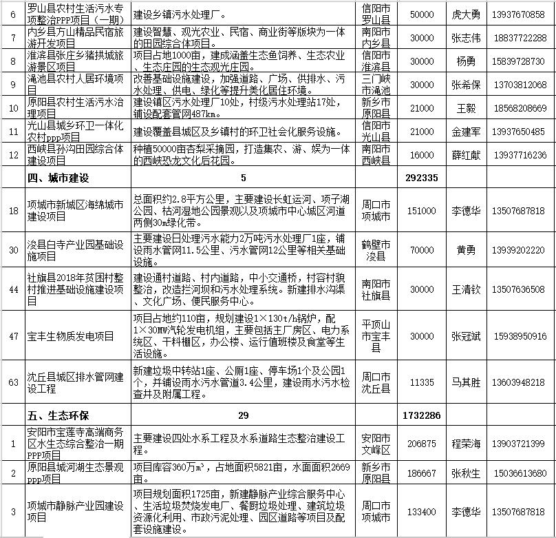 河南省2018年擬向民間資本推介項目清單(涉環(huán)保部分)