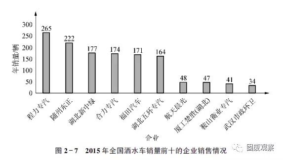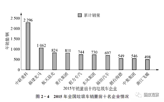 2015年,全國銷量前10企業(yè)合計完成垃圾車銷售8757輛,在全國垃圾車總銷量中的占有份額達到53.44%,同比提升6.89%。