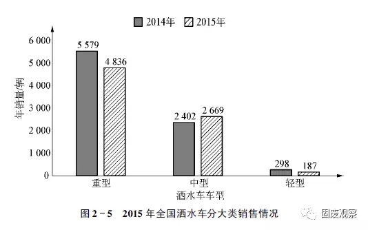 2015年,我國灑水車共完成銷售7692輛,同比降低7.09 %。在2015年全國灑水總銷量的占比方面,重型最多,超過62%,同比有4.52%的下降;中型屈居第二,超過34%,同比提升超過5%。