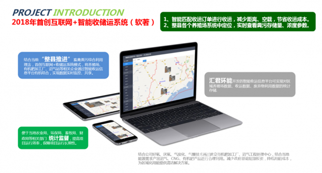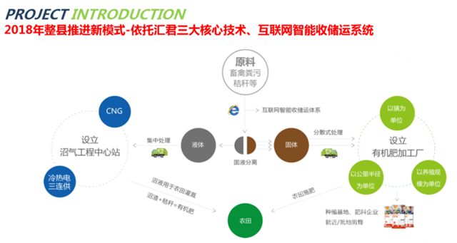 國家從2008年開始開始關(guān)注畜禽處理,2017年已經(jīng)開始形成規(guī)?;?。而匯君環(huán)能同時也從去年開始著手規(guī)劃整縣(市)資源化的處理,利用匯君模式,根據(jù)當(dāng)?shù)氐膶嶋H情況,合理規(guī)劃沼氣工程中心站,另外以村鎮(zhèn)為單位、以公里半徑為單位、以養(yǎng)殖規(guī)模為單位,建立有機(jī)肥加工廠,采用智能化收儲運平臺,有效利用地方的政策,配合消納政策,實現(xiàn)全方位畜禽糞污資源化智能處理。