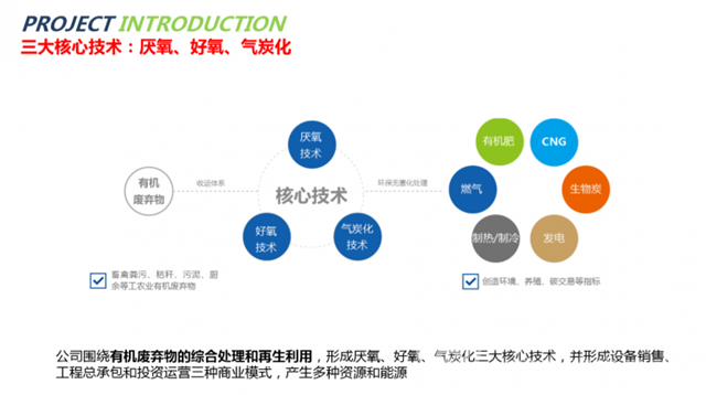 通過5年的潛心、實干積累,使匯君環(huán)能擁有了自己的一套核心技術(shù)模式,即厭氧與好氧相結(jié)合的工藝模式,保證每一個項目達(dá)到效果最優(yōu)化。厭氧路線,利用公司厭氧專利核心設(shè)備,將有機(jī)廢棄物轉(zhuǎn)化成沼氣,用來發(fā)電、脫碳制壓縮生物天然氣和供熱;好氧路線,利用智能化高溫好氧設(shè)備,直接產(chǎn)生符合國家標(biāo)準(zhǔn)的525有機(jī)肥,根據(jù)肥料客戶需求,還會再添加復(fù)配一些菌種,生產(chǎn)菌機(jī)肥。兩條核心技術(shù)路線綜合運用發(fā)展的基本策略,使公司在行業(yè)內(nèi)奠定了厚實的基礎(chǔ),區(qū)域整體規(guī)劃綜合處治理,實現(xiàn)了有機(jī)廢棄物資源化和肥料化相結(jié)合的匯君模式。