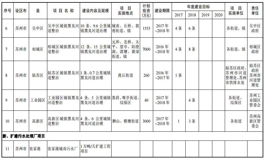 1.科學編制黑臭水體整治方案。在各地自身排查、梳理的基礎(chǔ)上,根據(jù)群眾舉報,媒體曝光,建立城鎮(zhèn)黑臭水體動態(tài)檔案。同時結(jié)合環(huán)境條件、控制目標等實際情況,按照《城市黑臭水體 — 82 — 整治工作指南》和《江蘇省城市黑臭水體整治實施方案編制大綱》要求編制黑臭水體整治方案,細化整治目標和重點整治任務(wù),并組織評審、報批和報備。方案需明確整治目標和重點任務(wù),確定技術(shù)可行、經(jīng)濟合理、效果明顯的技術(shù)方法和技術(shù)路線,以及整治措施和實施周期。各地加快整體城鎮(zhèn)黑臭水體整治實施方案編制、審批和報備,各區(qū)要在 2017 年 4 月底前編制完成黑臭水體整治方案的編制和評審,由市水利(水務(wù))局匯總、整編、組織技術(shù)論證后報蘇州市政府批準實施;各市要在 2017 年 4 月底前完成黑臭水體整治方案編制和評審,組織專家技術(shù)論證及經(jīng)水利局審查通過后報本級政府批準實施。