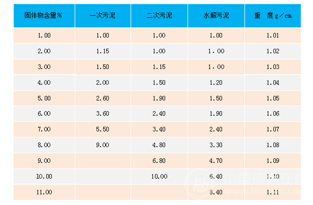 表B2污泥校正系數(shù)表