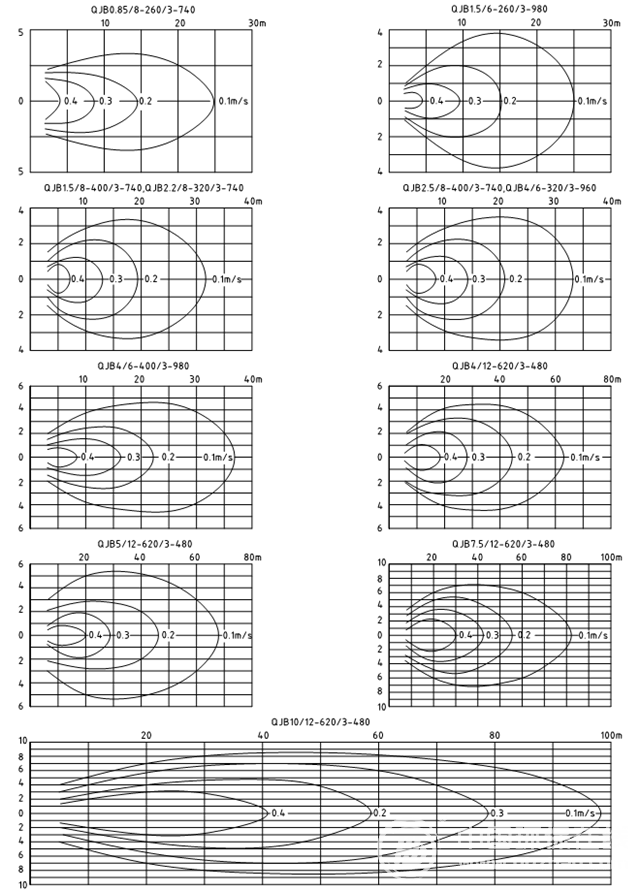 潛水?dāng)嚢铏C(jī)流速圖:以下流速場(chǎng)是在清水中,邊界水流速度為V=0.1m/s工況下。