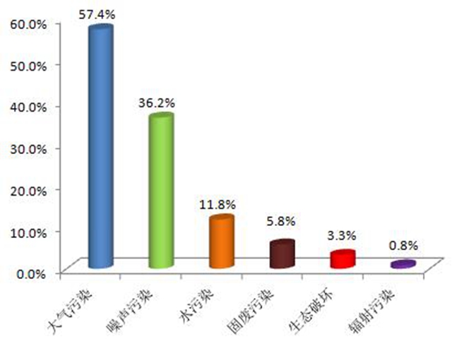 大氣污染舉報(bào)中,反映惡臭、異味污染的舉報(bào)最多,占涉氣舉報(bào)的43%,其次為煙粉塵及工業(yè)廢氣的舉報(bào),分別占涉氣舉報(bào)的34.6%和25%。噪聲污染舉報(bào)中,反映建設(shè)施工噪聲污染的舉報(bào)最多,占噪聲舉報(bào)的47.9%,其次為反映工業(yè)噪聲的舉報(bào),占29.4%。水污染方面,反映工業(yè)廢水污染的舉報(bào)最多,占涉水舉報(bào)的59.6%。