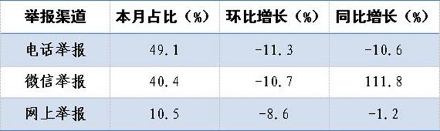 表1 2018年10月各舉報(bào)渠道情況分析