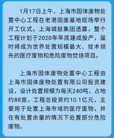 上海市固體廢物處置中心工程在老港固廢基地現(xiàn)場(chǎng)舉行開工儀式。上海城投集團(tuán)透露,整個(gè)工程計(jì)劃于2020年年底建成投產(chǎn),屆時(shí)將成為世界處置規(guī)模最大、技術(shù)領(lǐng)先的醫(yī)療廢物和危險(xiǎn)廢物焚燒項(xiàng)目。項(xiàng)目位置本項(xiàng)目擬建于上海市浦東新區(qū)老港固體廢棄物綜合利用基地內(nèi),位于基地最東側(cè)地塊的中部,占地面積為58585m,建筑面...