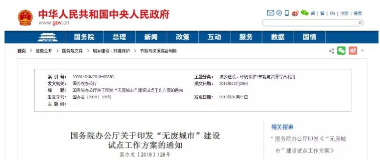 國(guó)務(wù)院辦公廳于近日印發(fā)“無(wú)廢城市”建設(shè)試點(diǎn)工作方案,方案提出,到2020年,系統(tǒng)構(gòu)建“無(wú)廢城市”建設(shè)指標(biāo)體系,探索建立“無(wú)廢城市”建設(shè)綜合管理制度和技術(shù)體系,試點(diǎn)城市在固體廢物重點(diǎn)領(lǐng)域和關(guān)鍵環(huán)節(jié)取得明顯進(jìn)展,大宗工業(yè)固體廢物貯存處置總量趨零增長(zhǎng)、主要農(nóng)業(yè)廢棄物全量利用、生活垃圾減量化資源化水平全面提...