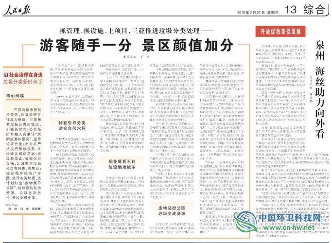 在旅游城市特別是景區(qū),垃圾處理往往成為難題。三亞探索垃圾分類新做法,引領(lǐng)新時(shí)尚:公共場所特勤人員兼任“文明旅游糾察員”,宣傳垃圾分類;出臺(tái)并嚴(yán)格執(zhí)行禁放規(guī)定,讓沙灘告別煙花屑;投放顏值高、智能化垃圾桶,讓游客對(duì)垃圾分類有興趣、有意識(shí);建設(shè)循環(huán)經(jīng)濟(jì)產(chǎn)業(yè)園,處理各類垃圾,還計(jì)劃打造“廢物展示公園”,將垃...