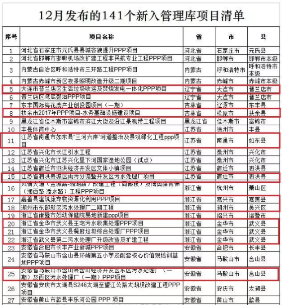 財(cái)政部PPP中心發(fā)布2018年12月141個(gè)新入管理庫(kù)項(xiàng)目清單,涉及近70個(gè)環(huán)保項(xiàng)目。這些都是誰(shuí)家的項(xiàng)目呢?歡迎留言告訴我們,清單詳情如下:相關(guān)閱讀:薛濤:什么才是真PPP?薛濤:如何做好PPP?