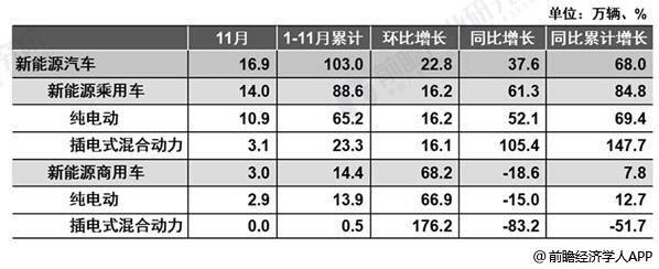即將到來的2019年,新能源汽車補(bǔ)貼將繼續(xù)退坡。年底有汽車銷售商針對補(bǔ)貼退坡忙著促銷,甚至打出了“倒計時牌”的噱頭。不過有行業(yè)人士表示,補(bǔ)貼退坡是大勢所趨,盼相關(guān)細(xì)則能盡快出臺,以便企業(yè)能盡早準(zhǔn)備好相應(yīng)的應(yīng)對措施。 11月新能源汽車銷量突破百萬 據(jù)前瞻產(chǎn)業(yè)研究院發(fā)布的《中國新...