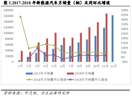 11 月中汽協(xié)數(shù)據(jù)公布,新能源汽車產(chǎn)銷量分別為17.3 萬輛和16.9 萬輛,同比增長分別為 36.9%和 37.6%。新能源乘用車銷量為 14 萬輛,其中純電動(dòng)乘用車 10.9 萬輛,插電式混合動(dòng)力乘用車 3.1 萬輛;新能源商用車的銷量為 3 萬輛,純電動(dòng)商用車銷售 2.9 萬輛。2018 年 ...