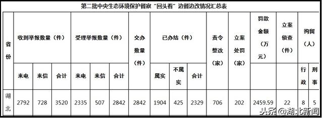 日前,生態(tài)環(huán)境部網站發(fā)文《第二批中央生態(tài)環(huán)境保護督察“回頭看”進駐工作結束》。文中稱,截至12月6日,共收到群眾舉報49561件,經梳理分析,受理有效舉報38133件,合并重復舉報后向地方轉辦37679件。地方已辦結26873件,其中,責令整改12240家;立案處罰2991家,罰款21414.36萬...