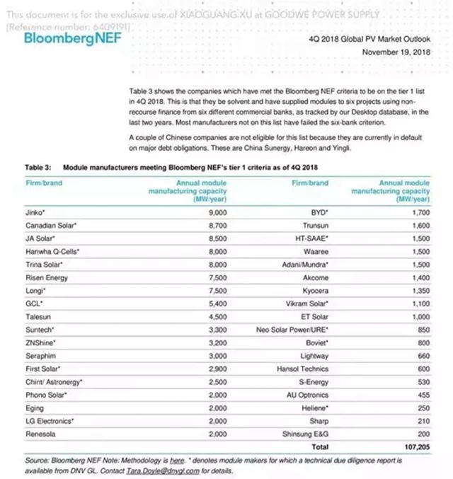 近日,全球知名研究機構(gòu)彭博新能源財經(jīng)(BNEF)公布了2018年第四季度光伏組件制造商排名分級。 在2018年第四季度全球光伏一級組件供應商排名中,前20名中17席均是中國企業(yè)!晶科榮登榜首,晶澳、天合光能、隆基、協(xié)鑫、尚德等光伏企業(yè)均榜上有名。◆◆◆NO.1晶科(Jinko) 晶科能源為全球多個國...