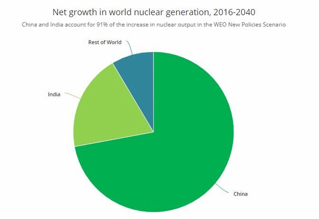 根據(jù)國際能源署(IEA)的數(shù)據(jù),到2040年全球核電量將增長約46%,其中凈增長的93%將來自中國和印度。2016年至2040年全球核電量預(yù)計凈增長 印度和中國將推動世界核電生產(chǎn)的增長,因為這兩個發(fā)展中國家都是世界能源的最大消費國,雙方都在推動各自的國家核能計劃。 IEA世界能源展望(WEO New...
