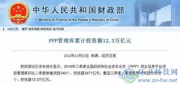 財(cái)政部近日發(fā)布統(tǒng)計(jì)顯示,2018年三季度全國(guó)政府和社會(huì)資本合作(PPP)綜合信息平臺(tái)項(xiàng)目管理庫(kù)環(huán)比二季度新增項(xiàng)目540個(gè)、投資額3471億元。截至三季度,管理庫(kù)累計(jì)項(xiàng)目數(shù)8289個(gè)、投資額12.3萬(wàn)億元。 財(cái)政部PPP中心介紹,各地繼續(xù)加強(qiáng)PPP項(xiàng)目規(guī)范發(fā)展,持續(xù)清理不合規(guī)項(xiàng)目。三季度管理庫(kù)共清退項(xiàng)...