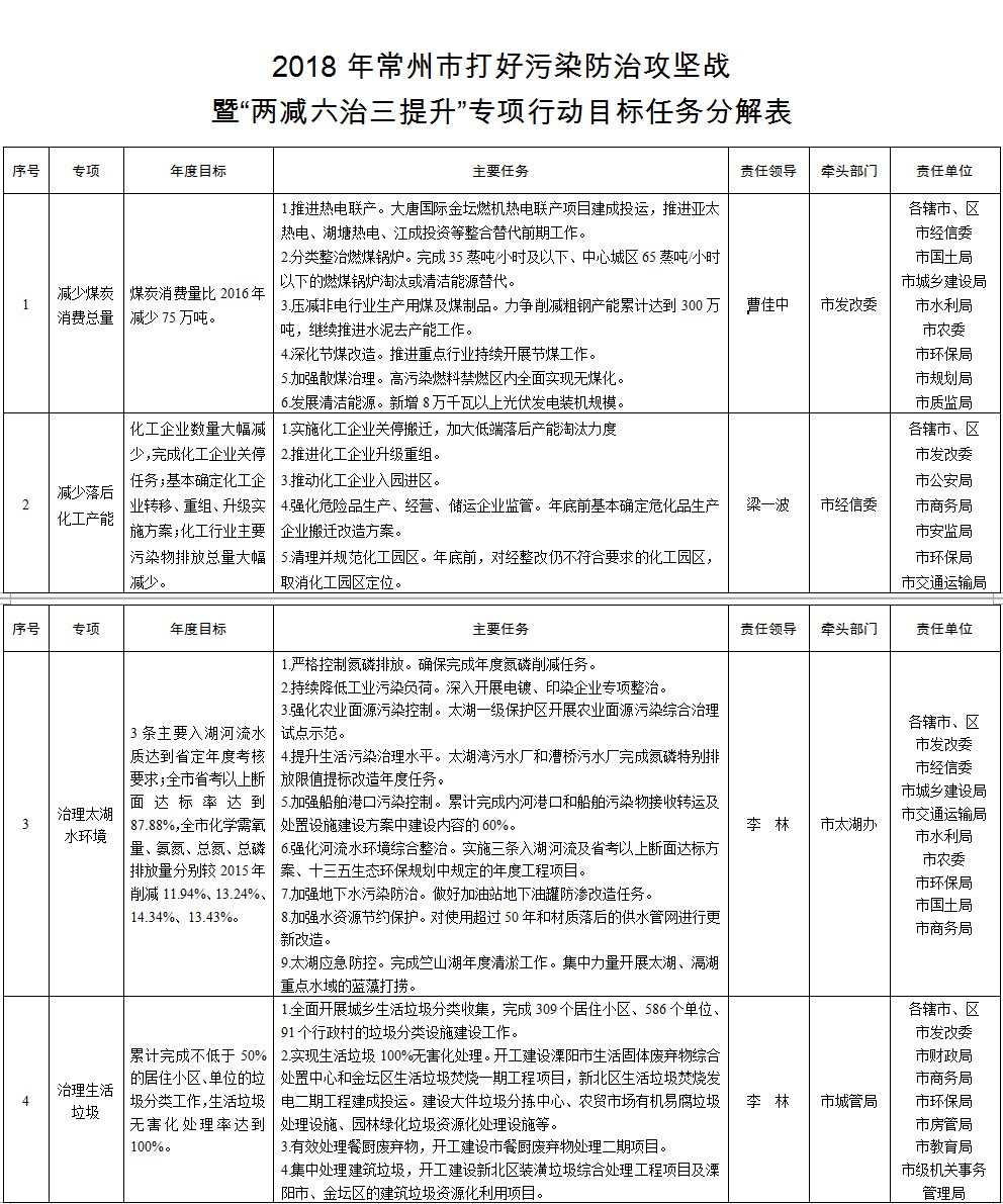 《2018年市打好攻堅(jiān)戰(zhàn)暨“兩減六治三提升”專項(xiàng)行動(dòng)工作方案》于日前印發(fā),根據(jù)方案,2018年,市區(qū)PM2.5年均濃度降到47微克/立方米,空氣質(zhì)量?jī)?yōu)良天數(shù)比例達(dá)到69.7%。省考斷面水質(zhì)優(yōu)Ⅲ類比例達(dá)到42.4%以上,無(wú)劣Ⅴ類斷面。全市土壤總體保持穩(wěn)定,保障農(nóng)用地和建設(shè)用地土壤環(huán)境安全。全市二氧化硫...