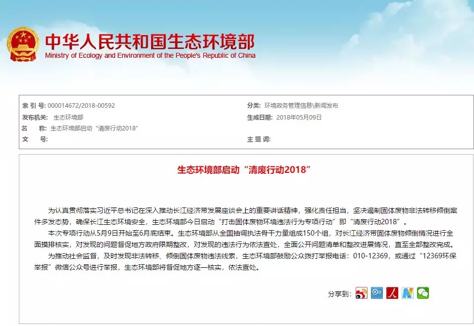 為遏制長(zhǎng)江流域固體廢物非法轉(zhuǎn)移傾倒案件多發(fā)態(tài)勢(shì),及時(shí)消除環(huán)境安全隱患,保障長(zhǎng)江生態(tài)環(huán)境安全,生態(tài)環(huán)境部決定組織開(kāi)展打擊固體廢物環(huán)境違法行為專(zhuān)項(xiàng)行動(dòng)。從有關(guān)?。▍^(qū)、市)環(huán)保系統(tǒng)抽調(diào)人員,組成150個(gè)專(zhuān)項(xiàng)行動(dòng)督查組,對(duì)長(zhǎng)江經(jīng)濟(jì)帶11省(市)1400多個(gè)固體廢物堆存點(diǎn)位進(jìn)行現(xiàn)場(chǎng)核查督導(dǎo)。這場(chǎng)名為“清廢行動(dòng)...