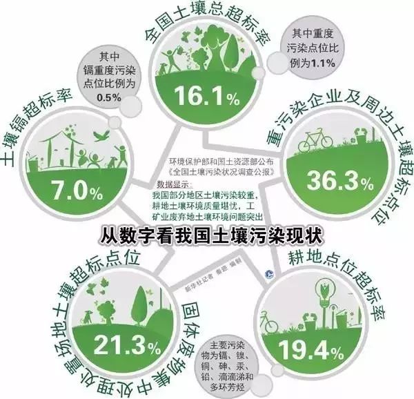 我國情況嚴重,土壤總超標率為16.1%。根據(jù)統(tǒng)計局2014年中國土壤污染情況調查(調查的范圍是除香港、澳門特別行政區(qū)和臺灣省以外的陸地國土,調查點位覆蓋全部耕地,部分林地、草地、未利用地和建設用地,實際調查面積約630萬平方公里。)數(shù)據(jù)顯示:全國土壤環(huán)境狀況總體不容樂觀,部分地區(qū)土壤污染較重,耕地土...