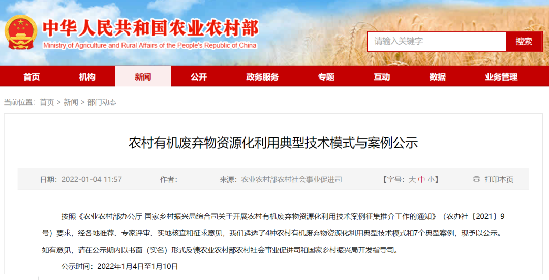 為貫徹落實《農(nóng)村人居環(huán)境整治提升五年行動方案(2021—2025年)》部署要求,提高農(nóng)村易腐垃圾、廁所糞污等有機廢棄物無害化處理和資源化利用水平,強化實用技術供給,農(nóng)業(yè)農(nóng)村部、國家鄉(xiāng)村振興局在各省(區(qū)、市)推薦的基礎上,經(jīng)專家評審、實地核查,遴選了4種農(nóng)村有機廢棄物資源化利用典型技術模式和7個典型案...