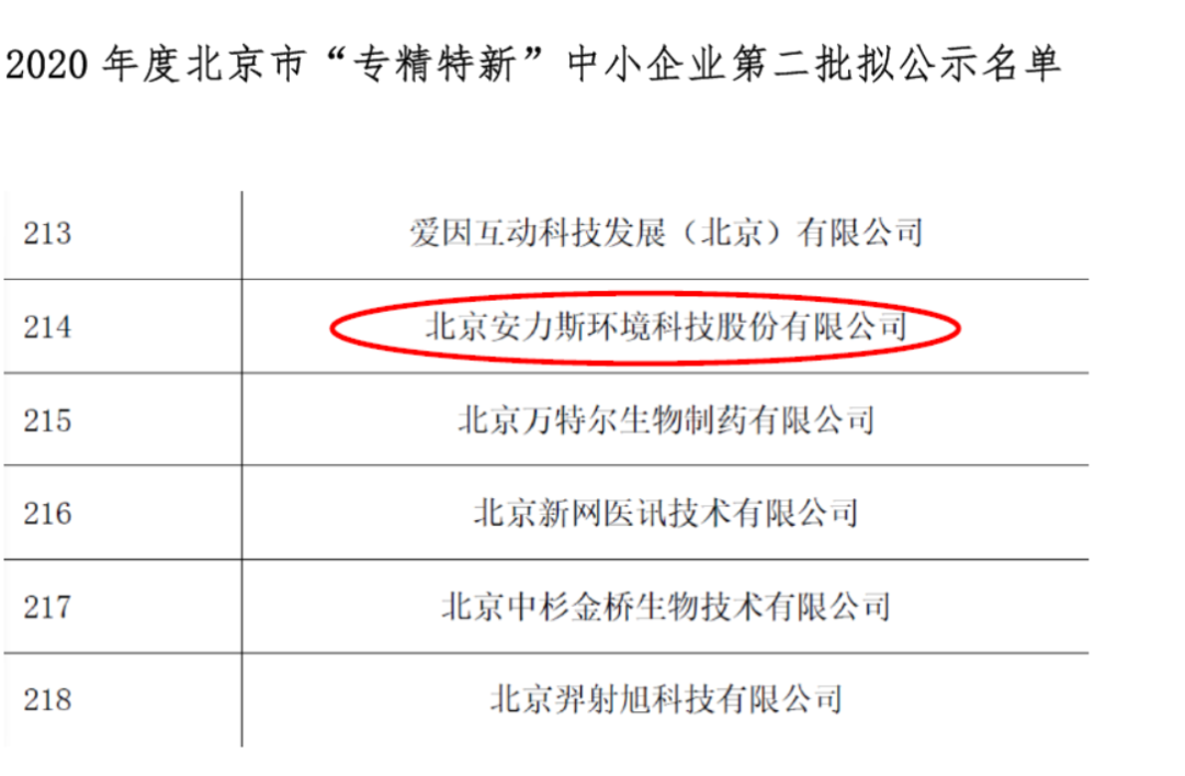 2020年7月,北京市經(jīng)濟(jì)和信息化委員會(huì)公示《2020年度北京市“專精特新”中小企業(yè)》第二批名單,北京安力斯環(huán)境科技股份有限公司(以下簡稱“安力斯環(huán)境”)成功入選,被授予2020年度北京市“專精特新”中小企業(yè)稱號。 近日,安力斯...